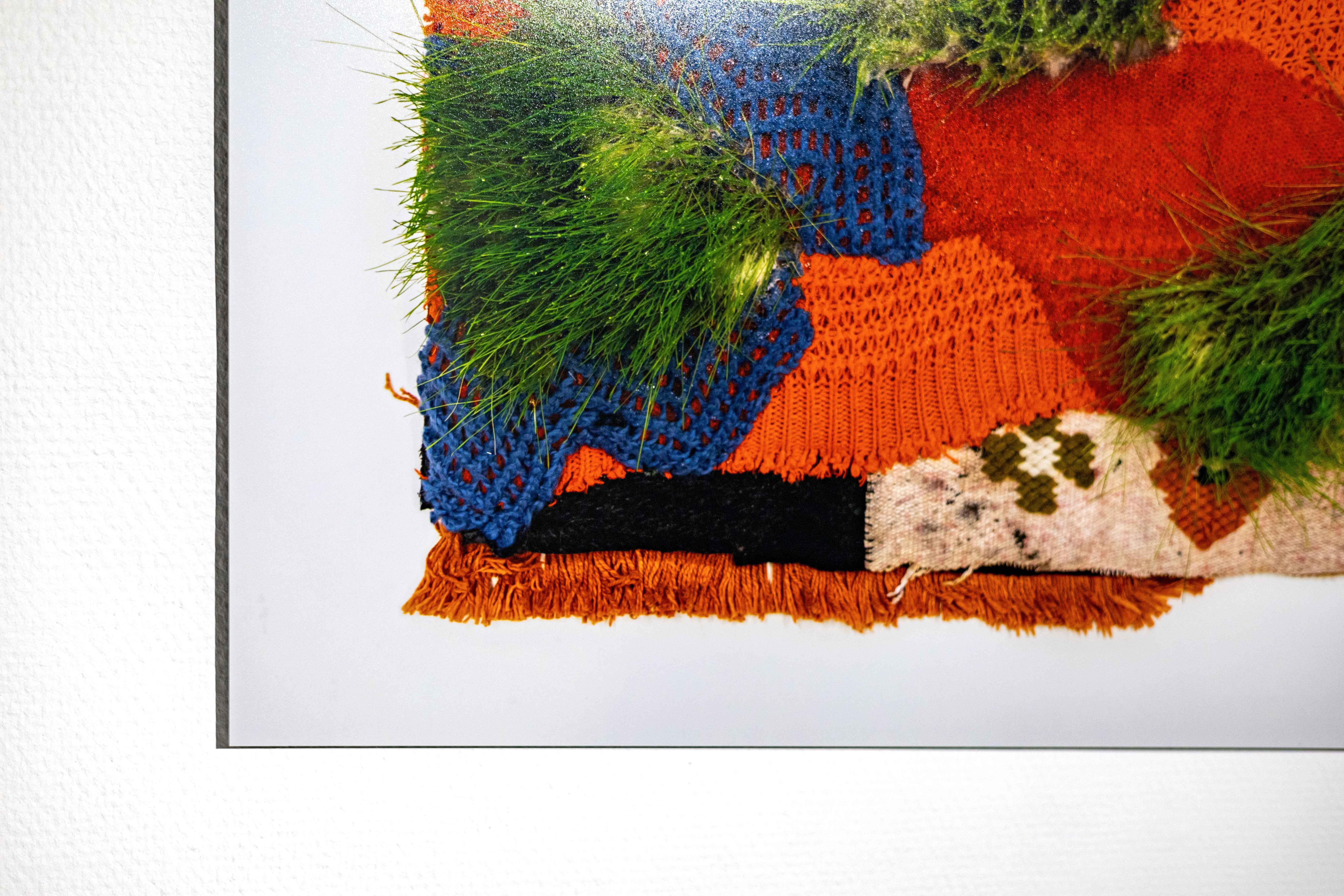 Bild på textil och växt kollage, fotoutskrift monterad på aluminium,