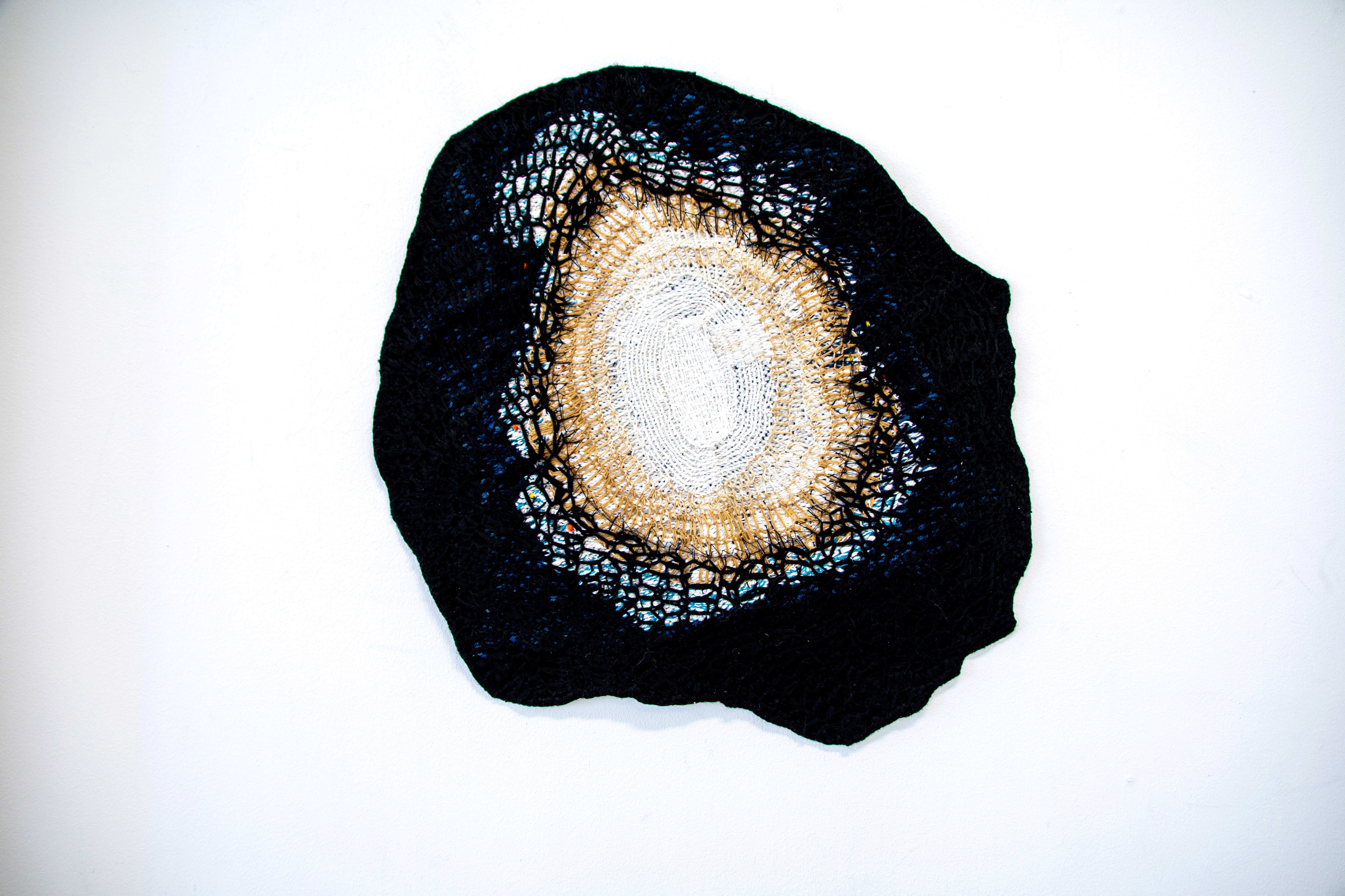 Väv, broderi, Liggande textilt verk. oval
